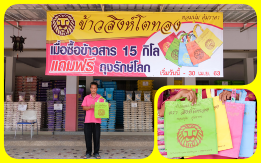 ศูนย์จำหน่าย ข้าวสิงห์โตทอง “หอมนุ่มคุ้มราคา” เลขที่ 2/4 ถนนราษฎร์ร่วมใจ ตำบลในเมือง อำเภอเมือง จังหวัดกำแพงเพชร ตอบแทนลูกค้า แจกถุงรักษ์โลก สีสันสดใส ผลิตโดยวัสดุที่มีความคงทน ใช้แทนถุงพลาสติก ร่วมลดปัญหามลพิษ ส่งเสริมการอนุรักษ์ธรรมชาติและสิ่งแวดล้อม ด้วยวิธีง่ายๆ เมื่อ ซื้อ ข้าวสารสิงห์โตทอง “หอมนุ่มคุ้มราคา” ขนาด 15 กิโลกรัม รับฟรี….ถุงรักษ์โลก สีสันสดใส เริ่มวันนี้ถึงวันที่ – 30 เม.ย. 63 โปรโมชั่นนี้ที่ศูนย์จำหน่ายข้าวสิงห์โตทอง เลยสี่แยกถนนสาย ก.โรงพยาบาลกำแพงเพชร ก่อนถึงสามแยกถนนริมปิงหลังโรงพยาบาลกำแพงเพชร