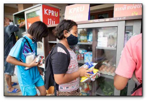 ให้เลือกหยิบกันชนิด ไม่อั้น แต่ละท่านสามารถ หยิบของกันได้อย่างจุใจ จนลืมไปว่าในตู้ยังมีไข่ไก่ ยังมีผักสด เช่น บวบ วุ้นเส้น ผงซักฟอก ให้เลือกเอากลับบ้านกันได้อย่างสบายใจ ตามสโลแกน “KPRU ปันสุขให้นะ” หยิบแต่พอดี หากมีแบ่งปันกันนะ ของมหาวิทยาลัยราชภัฏกําแพงเพชร