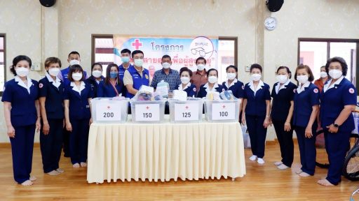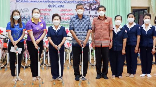 4. มอบไม้เม้าผู้สูงอายุ ของสำนักงานเหล่ากาชาดจังหวัดกำแพงเพชร จำนวน 30 อัน