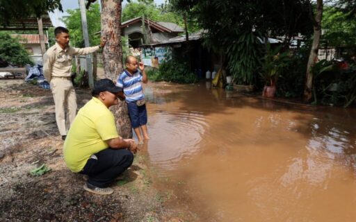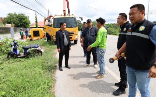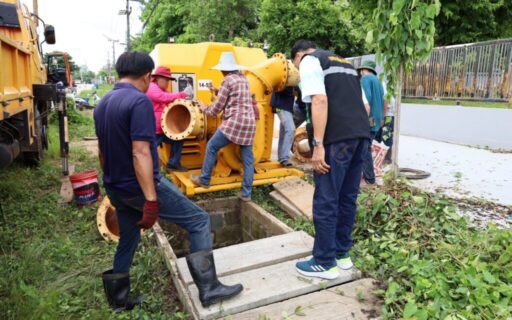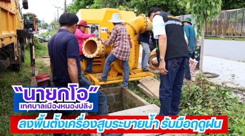 นายกเทศบาลเมืองหนองปลิง ลงพื้นตั้งเครื่องสูบระบายน้ำ รับมือฤดูฝน