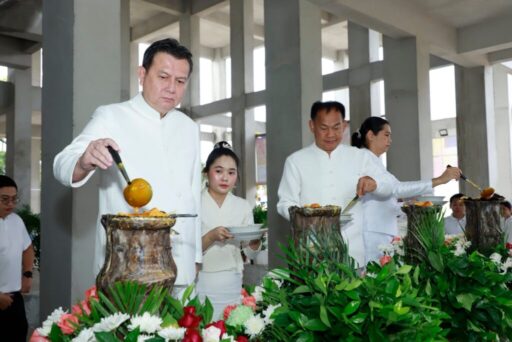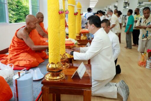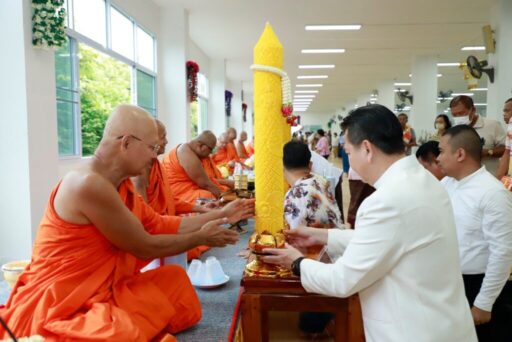 พิธีอันศักดิ์สิทธิ์นี้ เริ่มขึ้นในเวลา 07.30 น. โดยได้รับพระเมตตาอนุเคราะห์จาก พระพรหมวัชรวิสุทธิ์ เจ้าคณะภาค 4 และเจ้าอาวาสวัดคูยาง พระอารามหลวง เป็นประธานฝ่ายสงฆ์ พุทธศาสนิกชนที่มาร่วมงานต่างพร้อมใจกันถวายเทียนจำนำพรรษาและผ้าอาบน้ำฝน แด่พระภิกษุสงฆ์ เพื่ออุทิศส่วนกุศลให้กับบรรพบุรุษผู้ล่วงลับ และสืบสานประเพณีอันดีงามของชาวพุทธที่สืบทอดกันมายาวนาน