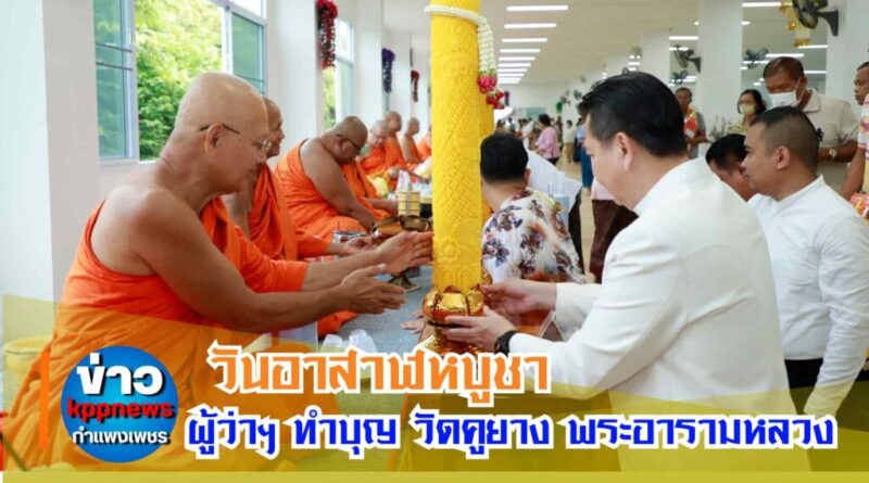 พระพรหมวัชรวิสุทธิ์ เจ้าคณะภาค 4วันที่10กรกฎาคม 2568) นายชาธิป รุจนเสรี ผู้ว่าราชการจังหวัดกำแพงเพชร พร้อมด้วย นายอนุชา พัสถาน รองผู้ว่าราชการจังหวัดกำแพงเพชร, หัวหน้าส่วนราชการ, ผู้แทนหน่วยงานต่างๆ และพุทธศาสนิกชนชาวกำแพงเพชรจำนวนมาก ได้ร่วมกันประกอบพิธีทำบุญตักบาตรพระสงฆ์จาก 3 วัด ได้แก่ วัดคูยาง วัดบาง และวัดเสด็จ ณ บริเวณมหาศาลานครชากังราว วัดคูยาง พระอารามหลวง ตำบลในเมือง อำเภอเมือง จังหวัดกำแพงเพชร เนื่องในเทศกาลวันอาสาฬหบูชาและวันเข้าพรรษา