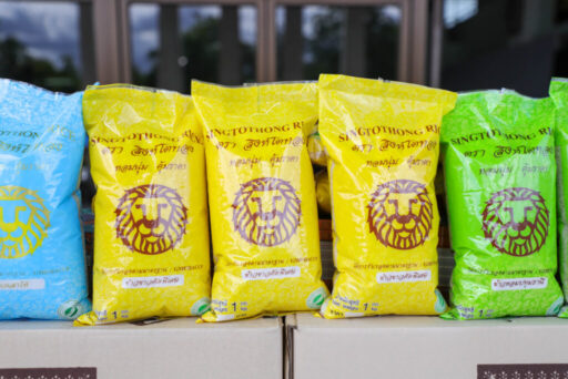 - ข้าวสารตราสิงห์โตทอง ขนาด 1 กิโลกรัม จำนวน 400 ถุง