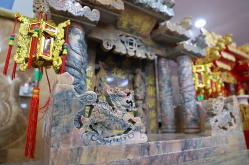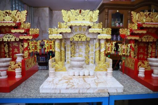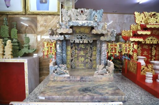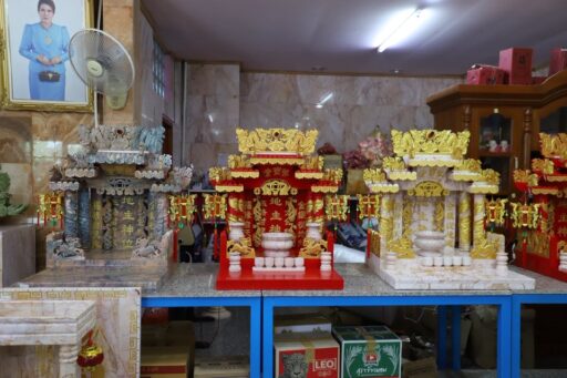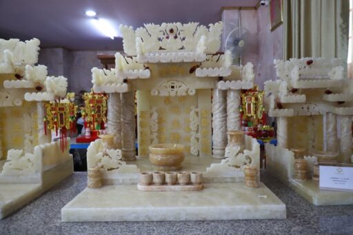 ตี่จู้เอี๊ยะ | ศาลพระภูมิ | เจดีย์ | พระแกะสลัก | โต๊ะหมู่ | ป้ายชื่อ | แจกัน | ลูกกรง | ใบเสมา | เสาโชว์ | ตะเกียง | งาช้าง | อ่างบัว ฯลฯ