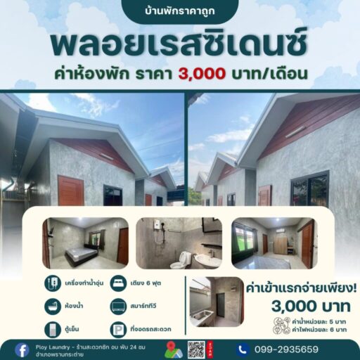 ห้องพักพลอย เรสซิเดนซ์ #เปิดจองห้องพักใหม่เอี่ยม #ห้องพักรายเดือนอำเภอพรานกระต่าย