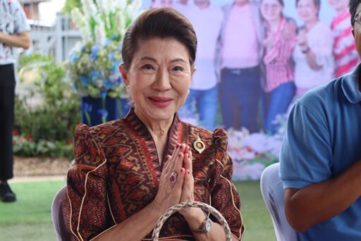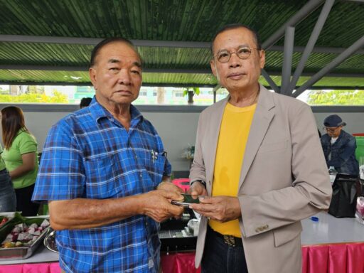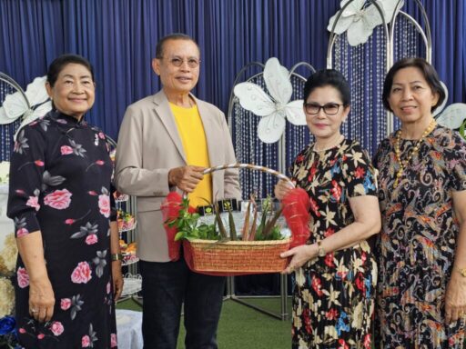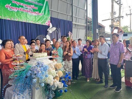 กำนันตู้ ได้กล่าวขอบคุณแขกผู้มีเกียรติที่มาร่วมอวยพรวันเกิด และมอบกระเช้าแสดงความยินดี