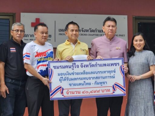 “ชมรมรวมพลคนรู้ใจกำแพงเพชร มอบเงินช่วยผู้ประสบภัยชายแดนไทย–กัมพูชา”