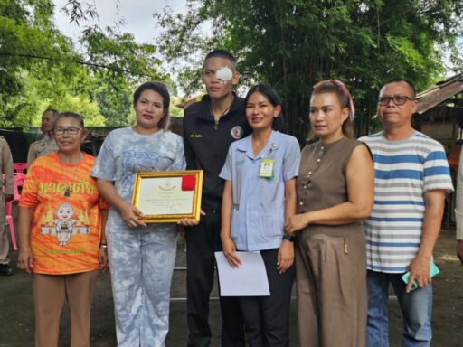 เมื่อวันที่ 21 ส.ค. 2568 เวลา 13.30 น. พ.ท.เพทาย สมฤทธิ์ ผู้บังคับการกองพันทหารราบที่ 1 กรมทหารราบที่ 4 ค่ายจิรประวัติ จ.นครสวรรค์ พร้อมคณะแพทย์ทหาร ส่วนราชการ ผู้นำท้องถิ่น และชุมชน ร่วมเดินทางเข้าเยี่ยมและให้กำลังใจ พลทหารตะวัน สิงห์เรือง อายุ 21 ปี หรือ “น้องเต้ย” ชาว อ.ลานกระบือ จ.กำแพงเพชร หลังจากได้รับบาดเจ็บสูญเสียดวงตาซ้ายจากเหตุปะทะและถูกสะเก็ดระเบิด ขณะปฏิบัติหน้าที่ที่ภูมะเขือ จ.อุบลราชธานี เมื่อ 28 ก.ค. ที่ผ่านมา