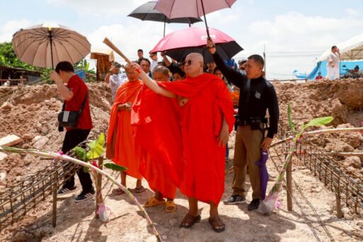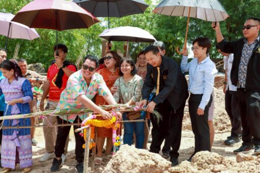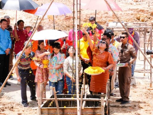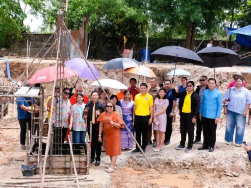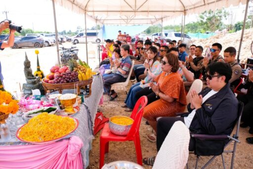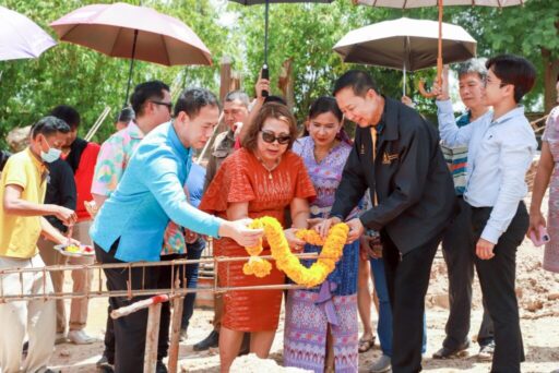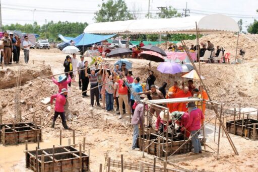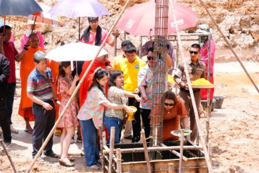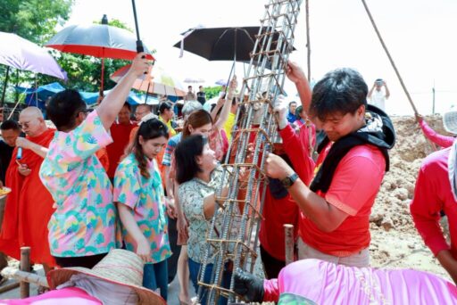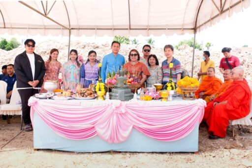 ฤกษ์มงคลดี“ครอบครัว”พลอยหินอ่อน”ประกอบพิธียกเสาเอกบ้านใหม่ สืบสานกิจการหินอ่อนพรานกระต่าย”