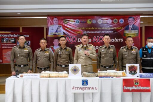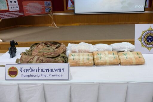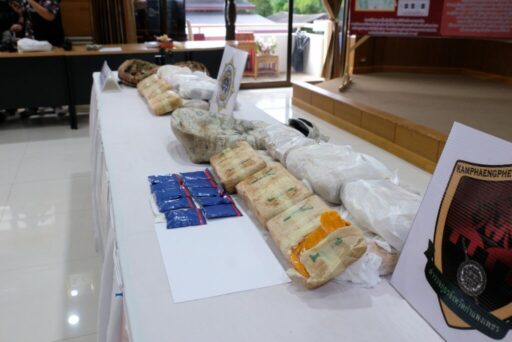 ที่กองบังคับการตำรวจภูธรจังหวัดกำแพงเพชร นายชาธิป รุจนเสรี ผู้ว่าราชการจังหวัดกำแพงเพชร พล.ต.ต.อมรศักดิ์ เกษมสิริ รองผู้บัญชาการตำรวจภูธรภาค 6 พล.ต.ต.โอภาส คงเมือง ผู้บังคับการตำรวจภูธรจังหวัดกำแพงเพชร พ.ต.อ.ญัฐวุฒิ สมชัยมงคล รองผู้บังคับการฯ พร้อมด้วย พ.ต.อ.ณัฐศักดิ์ จริยคุณ ผู้กำกับการสถานีตำรวจภูธรโกสัมพีนคร แถลงผลการปฏิบัติการจับกุมผู้ต้องหาคดียาเสพติดรายสำคัญ ได้ยาบ้าของกลางจำนวน 216,000 เม็ด รวมมูลค่ากว่า 12 ล้านบาท