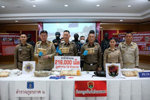 ตำรวจกำแพงเพชรแถลงข่าว จับยาบ้า 2.16 แสนเม็ด ผู้ต้องหาภาคใต้ใช้เส้นทางเหนือลำเลียงส่งสงขลา มูลค่ากว่า 12 ล้านบาท