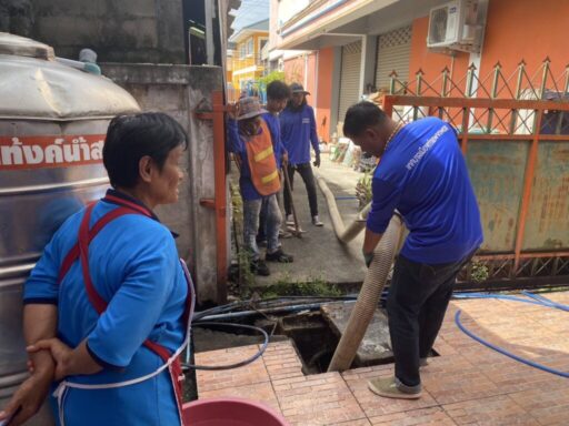 กองช่างสุขาภิบาล จึงได้เร่งระดมกำลังเจ้าหน้าที่และนำเครื่องมือ ดูดเลน เข้าดำเนินการอย่างเต็มที่ เพื่อให้ระบบระบายน้ำกลับมาใช้งานได้อย่างมีประสิทธิภาพ
