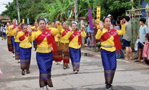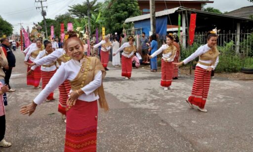 ชมการแสดง ของนางรำที่ร่วมขบวนตานก๋วยสลาก