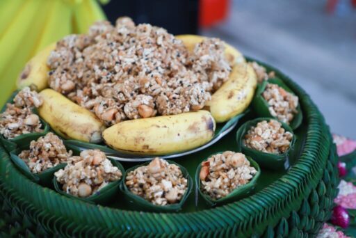 กระยาสารท เป็นขนมไทยโบราณ ทำจาก ถั่ว งา ข้าวคั่ว และน้ำตาล นิยมทำในช่วง สารทไทย แรม 15 ค่ำ เดือน 10 เพื่อ ทำบุญอุทิศส่วนกุศลแก่บรรพบุรุษ จนกลายเป็น ประเพณีสารทไทย ที่สืบทอดมาถึงปัจจุบัน