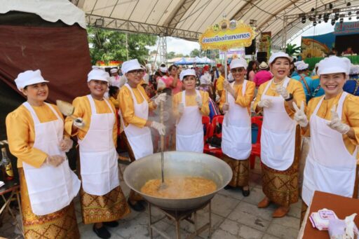 สตรีผู้นำชุมชนร่วมกวนกระยาสารทกระทะหลวง สืบสานภูมิปัญญาไทยคู่กล้วยไข่ ของดีเมืองกำแพง