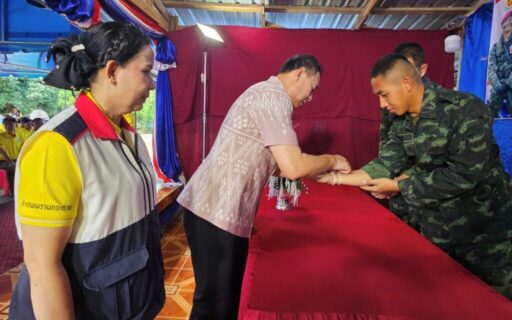 นายอำเภอพรานกระต่ายเดินหน้าสร้างขวัญกำลังใจทหารกล้ากลับจากปฏิบัติหน้าที่ชายแดนไทย-กัมพูชา ในพื้นที่ตำบลวังควง