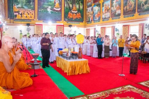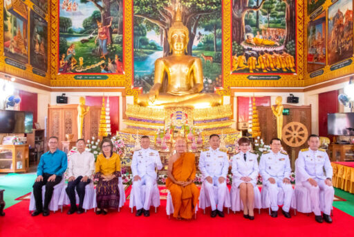 นายอภินันท์ มุสิกะพงษ์ วัฒนธรรมจังหวัดกำแพงเพชร นางสาวปทิตตา เลาหพิบูลรัตนา คลังจังหวัดกำแพงเพชร นายธนัช ศรีคุ้ม ประมงจังหวัดกำแพงเพชร นายปริญญา ถวัลย์อรรณพ ท่องเที่ยวและกีฬาจังหวัดกำแพงเพชร นายมนต์ชัย รุ่งชาญชัย ประธานสภาอุตสาหกรรมกลุ่มจังหวัดภาคเหนือตอนล่าง 2 ประธานกลุ่ม บริษัทสิงห์โตทอง กรุ๊ป พร้อมด้วยผู้แทนหน่วยงานภาครัฐ ภาคเอกชน สื่อมวลชน และพุทธศาสนิกชน ร่วมในพิธีอย่างพร้อมเพรียง