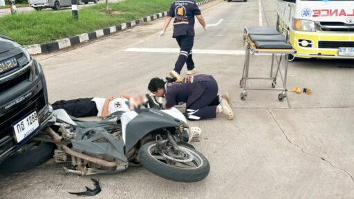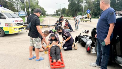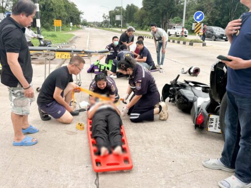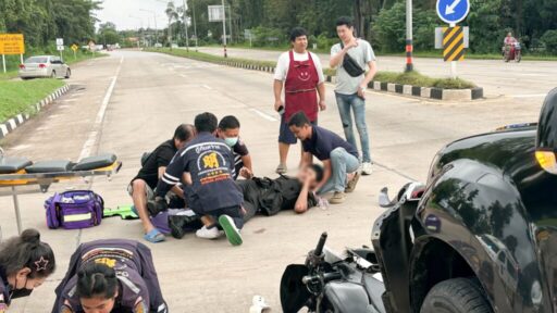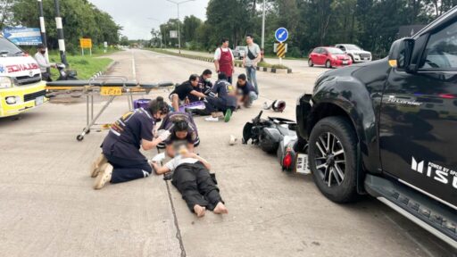 อุบัติเหตุสามแยก กศน. หนองปลิงเมืองกำแพงเพชร กระบะชนจักรยานยนต์ นักเรียนเทคนิคบาดเจ็บ 2 ราย