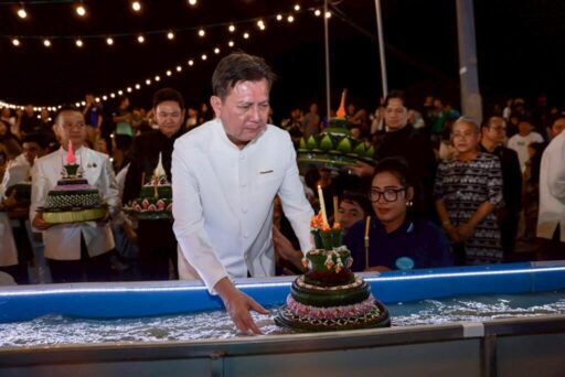 ผู้ว่าราชการจังหวัดกำแพงเพชร นำส่วนราชการและประชาชนร่วมลอยกระทง ชมการแสดงโดรนแปรอักษรสุดตระการตา ในงานประเพณีลอยกระทง ประจำปี 2568 เทศบาลเมืองกำแพงเพชร