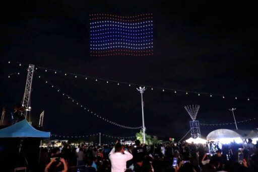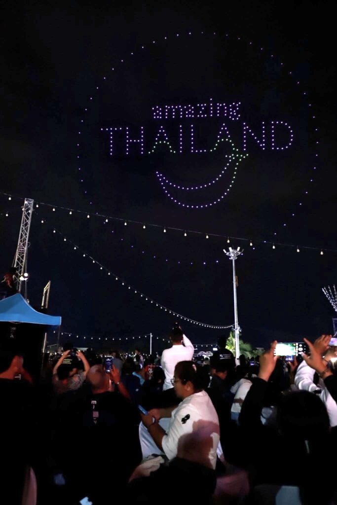 ภายในงาน ผู้ว่าราชการจังหวัดกำแพงเพรพรและคณะได้รับชม การแสดงโดรนแปรอักษร (Drone Light Show) จำนวน 12 ชุด เหนือท้องฟ้าแม่น้ำปิงสุดอลังการ