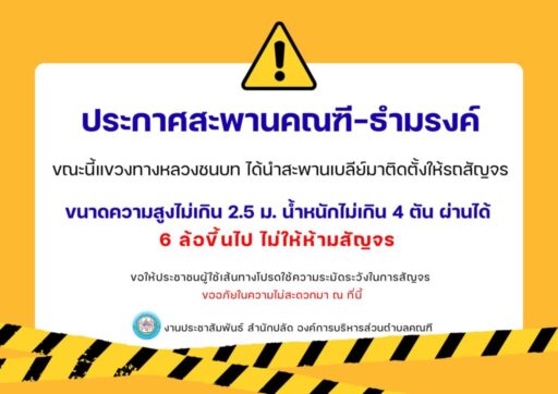งดใช้เส้นทางนี้ ชั่วคราว จนกว่าการซ่อมแซมถาวรจะแล้วเสร็จ