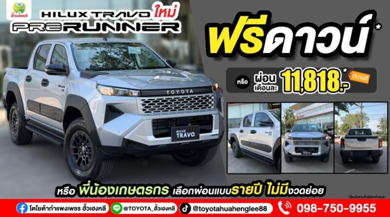 โตโยต้ากำแพงเพชร ฮั้วเฮงหลี ชวนออกรถ Hilux Travo Prerunner รับความคุ้มค่ารับปีใหม่