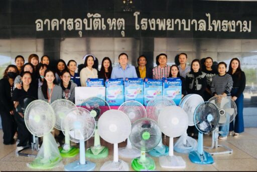 ซึ่งได้ร่วมกันมอบสิ่งของอุปโภคบริโภคและอุปกรณ์ที่จำเป็นต่อการดูแลผู้ป่วย ประกอบด้วย