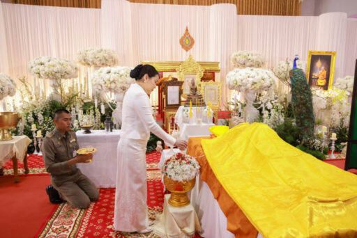 เมื่อเวลา 16.30 น. วันที่ 12 มกราคม 2569 พระพรหมวัชรวิสุทธิ์ เจ้าคณะภาค 4 เจ้าอาวาสวัดคูยาง พระอารามหลวง เป็นประธานฝ่ายสงฆ์ในพิธีพระราชทานน้ำหลวงสรงศพ โดยมีพระเทพมุณี ผู้ช่วยเจ้าอาวาสวัดปากน้ำ ภาษีเจริญ กรุงเทพฯ สหธรรมิก ร่วมประกอบพิธี