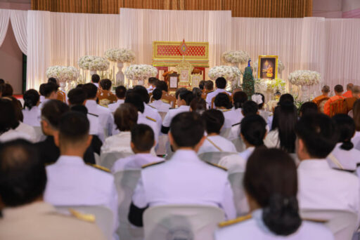 ในโอกาสนี้ เจ้าหน้าที่กองพิธีการศพที่ได้รับพระราชทาน ได้อัญเชิญเครื่องยศพระราชทานประกอบหีบเชิงชาย และจัดพิธีทอดผ้าไตรจำนวน 10 ไตร โดยมีพระสงฆ์สมณศักดิ์ 10 รูป พิจารณาผ้าไตรตามลำดับพิธี จากนั้นประกอบพิธีบำเพ็ญกุศลศพและสวดพระอภิธรรมศพคืนแรก