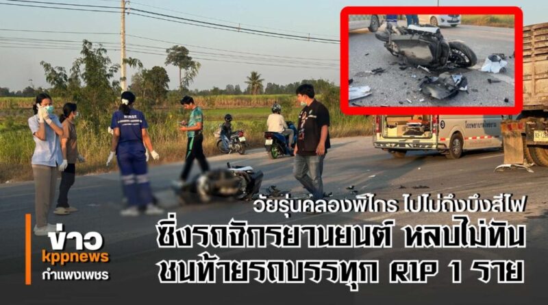 วัยรุ่นคลองพิไกร ซิ่งรถจักรยานยนต์ หลบไม่ทันชนท้ายรถบรรทุก RIP 1 ราย