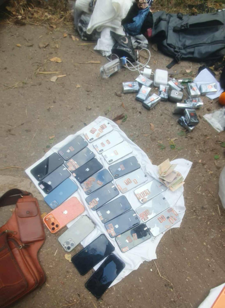 ขณะตรวจค้นภายในซากรถ เจ้าหน้าที่พบโทรศัพท์มือถือจำนวน 23 เครื่อง ถูกบรรจุอยู่ในกระเป๋า จึงตรวจยึดไว้เป็นหลักฐาน และนำไปตรวจสอบอย่างละเอียดที่ สภ.พรานกระต่าย