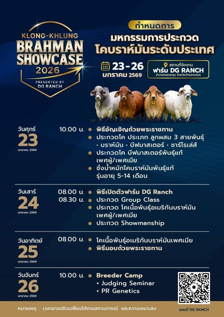 วันที่ 23 มกราคม 2569 เวลา 13.30 น. ณ สนามประกวด ฟาร์ม ดีจี แรนซ์ จำกัด ตำบลคลองขลุง อำเภอคลองขลุง จังหวัดกำแพงเพชร