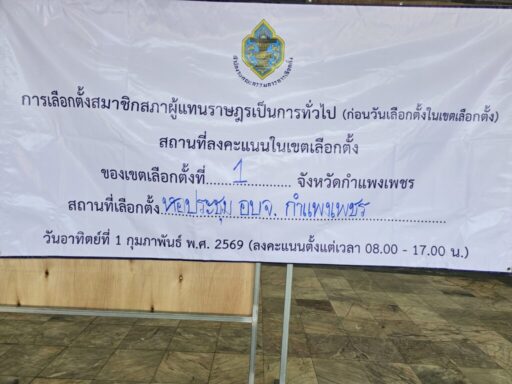วันที่ 1 กุมภาพันธ์ 2569 เวลา 14.30 น.บรรยากาศการลงคะแนนเลือกตั้งล่วงหน้าสมาชิกสภาผู้แทนราษฎร (ส.ส.) เป็นการทั่วไป ในเขตเลือกตั้งที่ 1 จังหวัดกำแพงเพชร เมื่อช่วงเช้าวันที่ 1 กุมภาพันธ์ 2569 หอประชุมองค์การบริหารส่วนจังหวัดกำแพงเพชร ตำบลในเมือง อำเภอเมือง จังหวัดกำแพงเพชร เป็นไปอย่างเงียบเหงา