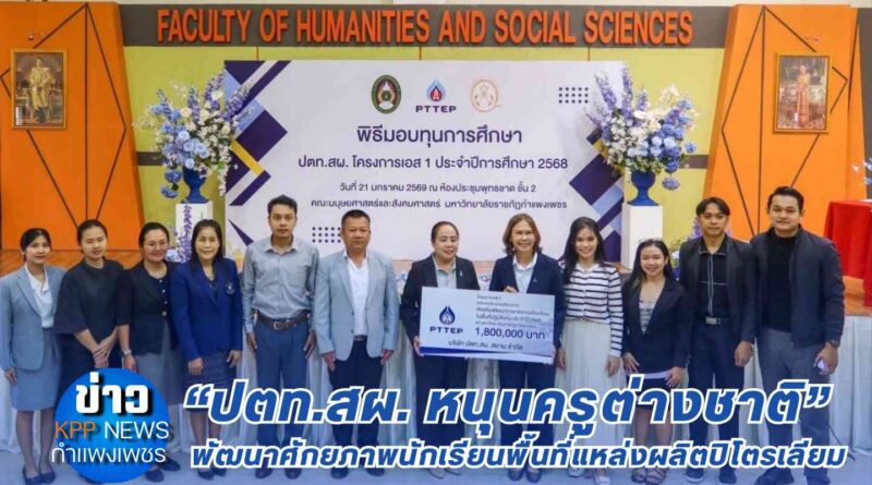 โดยได้รับความร่วมมือจากคณะมนุษยศาสตร์และสังคมศาสตร์ มหาวิทยาลัยราชภัฏกำแพงเพชร ในการดำเนินจัดหาและคัดเลือกคุณครูสอนภาษาอังกฤษชาวต่างชาติที่มีประสบการณ์ ความรู้ เพื่อยกระดับคุณภาพการเรียนรู้ของเยาวชนในพื้นที่ปฏิบัติงาน ซึ่งเป็นทักษะที่จำเป็นต่อการศึกษาและการดำรงชีวิตในอนาคต สะท้อนความมุ่งมั่นในการดำเนินงานของ ปตท.สผ. ที่จะเติบโตไปพร้อมกับชุมชน ด้วยความรับผิดชอบต่อสังคมอย่างยั่งยืน