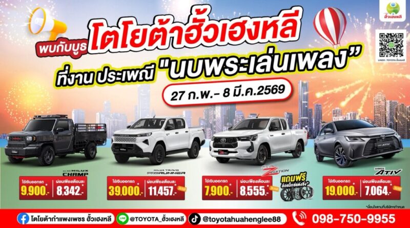 พบกับบูธ โตโยต้าฮั้วเฮงหลี ที่งานประเพณี นบพระ-เล่นเพลง ปี 2569