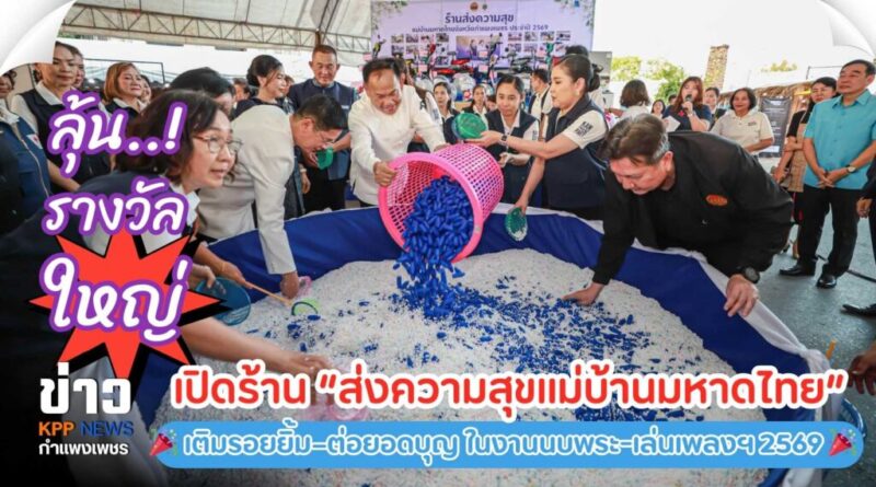 วันที่ 27 กุมภาพันธ์ 2569 เวลา 17.00 น. บริเวณลานโพธิ์ ภายในงานประเพณี “นบพระ-เล่นเพลง และงานกาชาดจังหวัดกำแพงเพชร” ประจำปี 2569 บรรยากาศคึกคักตั้งแต่คืนแรก เมื่อ นายชาธิป รุจนเสรี ผู้ว่าราชการจังหวัดกำแพงเพชร เป็นประธานเปิด “ร้านส่งความสุขแม่บ้านมหาดไทยจังหวัดกำแพงเพชร” เดินหน้าภารกิจสาธารณกุศล เพื่อยกระดับคุณภาพชีวิตประชาชน
