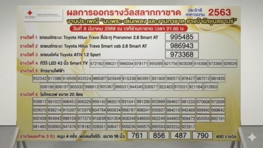 ผลการออกรางวัลสลากกาชาด งานประเพณี “นบพระ-เล่นเพลง”2569