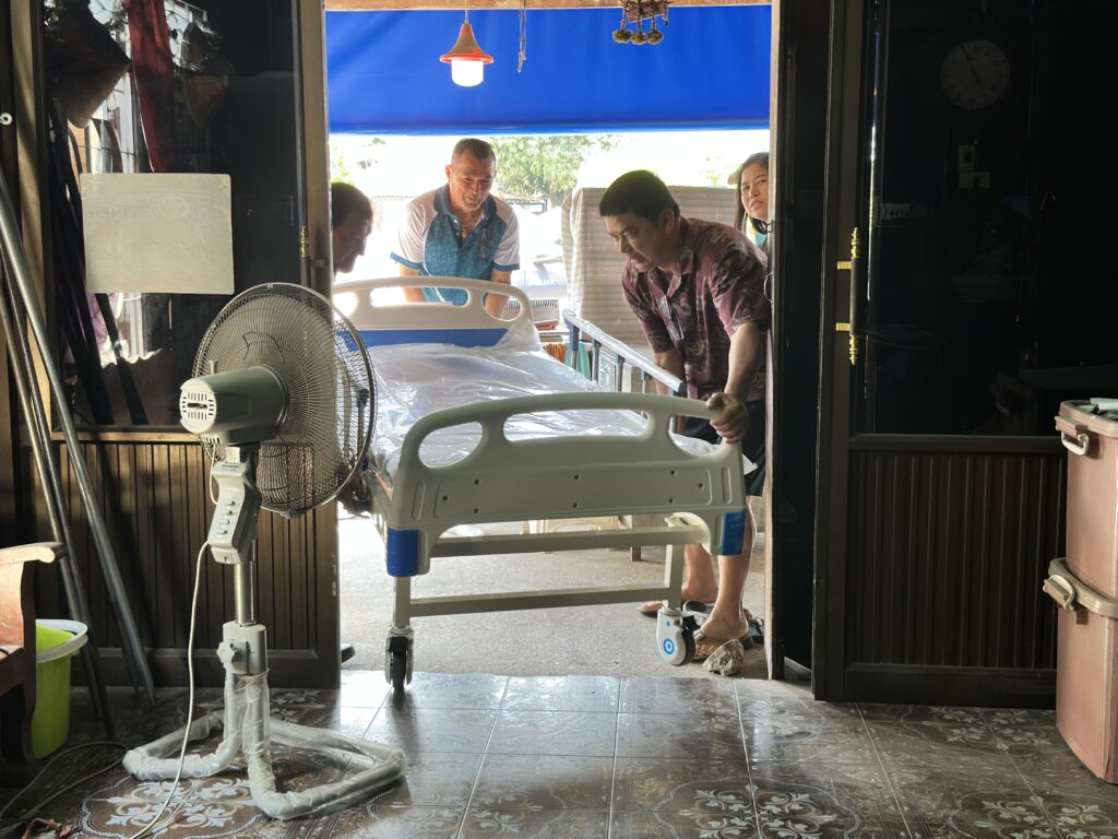 ล่าสุด “ครูแดง” ได้รับมอบ เตียงผู้สูงอายุแบบปรับระดับได้ สามารถปรับสูง–ต่ำ ช่วยให้การดูแลผู้ป่วยสะดวกขึ้น และช่วยให้ผู้สูงอายุสามารถเปลี่ยนอิริยาบถได้ง่ายขึ้น ส่งผลให้มีคุณภาพชีวิตที่ดีขึ้น จากเดิมที่ต้องนอนบนเตียงไม้แบบเก่าซึ่งลุกนั่งได้ลำบาก