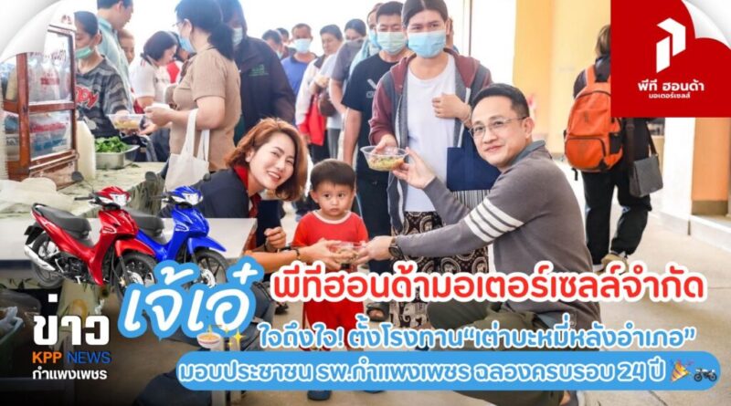 🍜✨ พีที ฮอนด้ากำแพงเพชร ใจถึงใจ! ตั้งโรงทาน “เต่าบะหมี่หลังอำเภอ” 350 ชาม มอบประชาชน รพ.กำแพงเพชร ฉลองครบรอบ 24 ปี 🎉🏍️