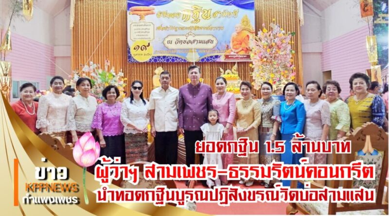 Read Moreผู้ว่าฯ สามเพชร-ธรรมรัตน์คอนกรีต นำชาวพุทธร่วมทอดกฐินบูรณปฏิสังขรณ์วัดบ่อสามแสน ยอดกฐินรวมกว่า 1.5 ล้านบาท