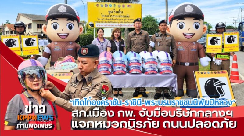 Read Moreสภ.เมือง กพ. จับมือบริษัทกลางฯ แจกหมวกนิรภัย ถนนปลอดภัย”เทิดไท้องค์ราชัน-ราชินี-พระบรมราชชนนีพันปีหลวง”